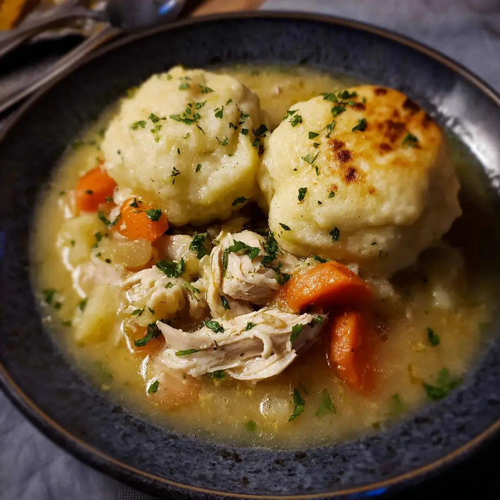 - In Deep, Wide Bowls: Ladle the stew generously into large, shallow bowls, ensuring each serving gets plenty of chicken, vegetables, and rich gravy. Top with 2-3 fluffy dumplings.