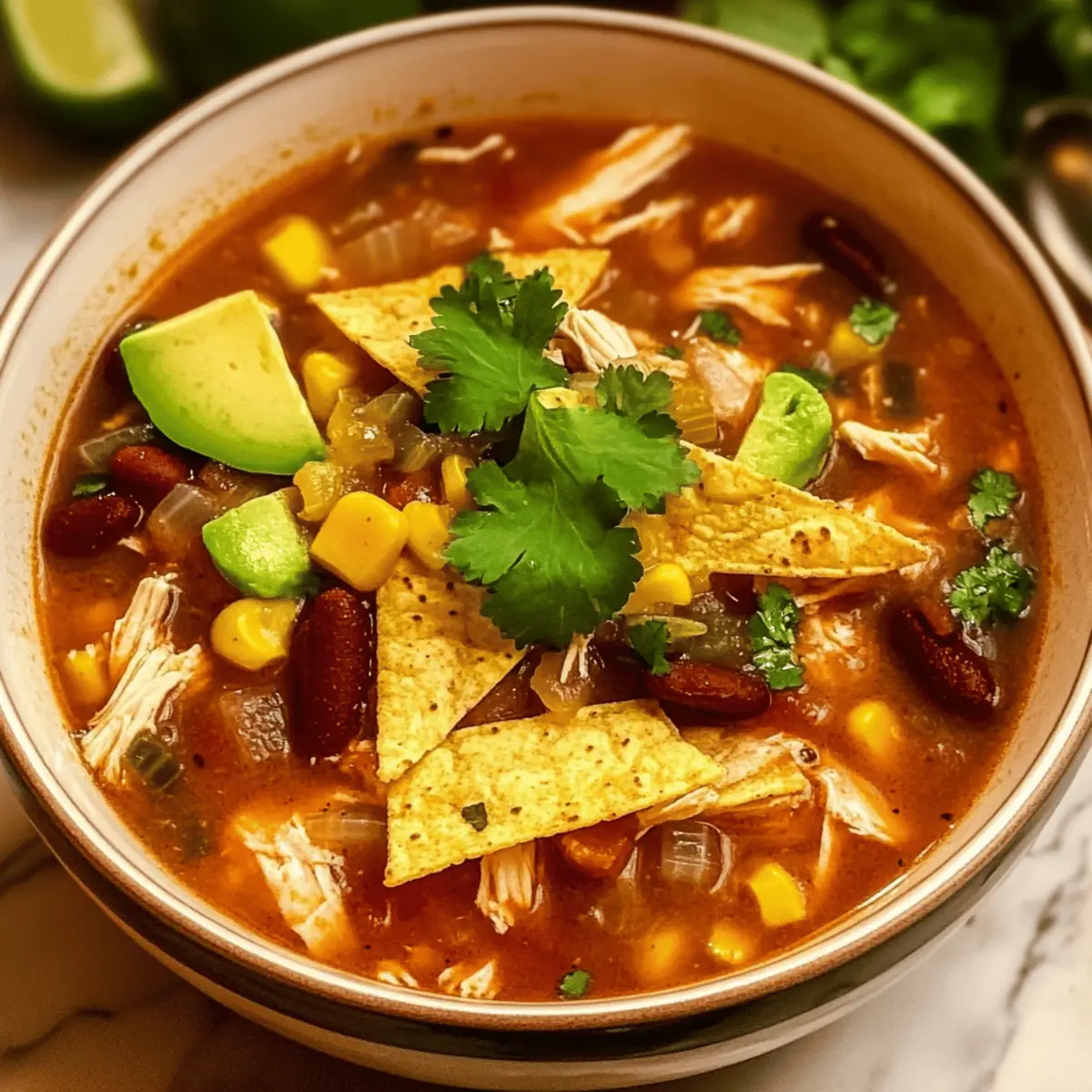 - Garnish & Serve: Ladle hot soup into bowls, top with crispy tortilla strips, avocado slices, fresh cilantro, lime wedges, and a sprinkle of shredded cheese.