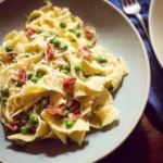 Of all the dishes in my weekly rotation, there are few that bring as much universal joy and sighs of contentment as this Creamy Pasta with Pancetta and Peas. It has become my secret weapon for busy weeknights when I crave something that feels luxurious and deeply satisfying but only have about 30 minutes to spare. The first time I made it, my family was silent for the first five minutes, a rare and telling occurrence, punctuated only by the sound of forks twirling through nests of fettuccine. My husband, a man of simple culinary pleasures, declared it “restaurant-quality,” the highest praise in his lexicon. The kids, who usually view green vegetables with suspicion, happily devoured the sweet pops of peas, completely won over by their partnership with the salty pancetta and luscious cream sauce. This recipe, inspired by the brilliant Meghan McMorrow at Fox and Briar, is more than just a set of instructions; it’s a formula for turning a handful of humble ingredients into an elegant, comforting meal that tastes like it took hours to prepare. The magic lies in its perfect balance: the rich, salty pork, the sweet peas, the velvety cream, and the final, brilliant flourish of lemon and mint that cuts through the richness and brightens every single bite. It’s the kind of meal that makes you feel like a kitchen hero, effortlessly whipping up a masterpiece that will be requested again and again.