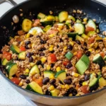 There are certain recipes that become legends in a busy household, and for my family, this Ground Turkey Skillet with Zucchini, Corn, and Black Beans is one of them. I still remember the first time I made it on a chaotic Tuesday evening. The day had been a whirlwind of meetings, school runs, and forgotten errands. By 6 PM, the thought of a complicated dinner was overwhelming. I needed something fast, healthy, and, most importantly, something everyone would actually eat without complaint. I found this recipe, saw the 25-minute total time, and decided to give it a shot. As the ground turkey sizzled and the vibrant colors of corn, tomatoes, and zucchini filled the pan, a delicious aroma of cumin and garlic began to permeate the kitchen. The family, drawn by the scent, trickled in. The verdict? An overwhelming success. It was devoured, with requests for seconds. It has since become our go-to for weeknight salvation, a reliable star for meal prep Sundays, and a testament to the fact that incredibly flavorful and nutritious meals don’t need to be complicated or time-consuming. It’s a one-pot wonder that delivers on every front: flavor, nutrition, and convenience.