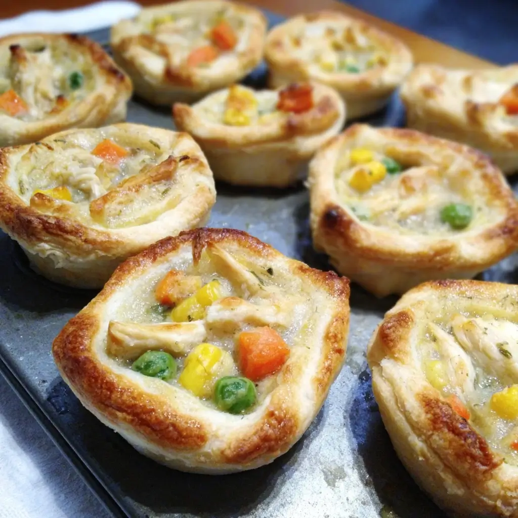 The magic of this recipe lies in its brilliant simplicity. Using refrigerated crescent rolls for the crust is a stroke of genius, creating a flaky, buttery, and golden-brown shell without any of the hassle of making pie dough from scratch. The filling is a creamy, savory dream, brought together in minutes with pre-cooked chicken and a can of cream of chicken soup. But the secret ingredients that truly elevate it are the dollop of sour cream, which adds a subtle, delightful tang, and a dash of poultry seasoning that infuses the entire pie with that classic, herbaceous aroma we all associate with a slow-cooked meal. These little pies bake up so beautifully, with the corners of the crescent dough peeking over the muffin tin like golden-brown stars. They’ve become my go-to for everything from hectic school nights to casual get-togethers with friends, and they never fail to impress. They are, without a doubt, the easiest, tastiest, and most surprisingly delicious way to get that beloved pot pie flavor on the table in under 40 minutes.