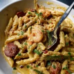 Get ready to transform your dinner routine with a recipe that packs a punch of flavor without leaving you with a sink full of dishes. This One-Pot Creamy Cajun Pasta with Shrimp and Andouille Sausage is the epitome of comfort food with a sophisticated, spicy twist. Drawing inspiration from the bold and rustic flavors of Louisiana, this dish brings together juicy jumbo shrimp, smoky andouille sausage, and a velvety, rich cream sauce infused with fiery Cajun spices. The genius lies in the one-pot method, where the pasta cooks directly in the sauce, absorbing all the incredible flavors and releasing its starches to create a naturally thick and luscious consistency. It’s an efficient, impressive, and utterly delicious meal that’s perfect for a busy weeknight but special enough for a weekend feast.