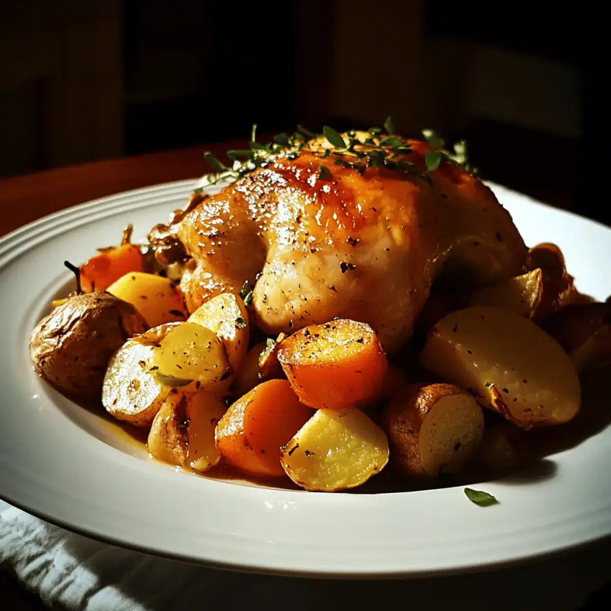 - Rest & Serve: Let the roasted chicken rest for 10 minutes to redistribute juices. Carve, plate with caramelized vegetables, and garnish with fresh thyme for a stunning, hearty meal.